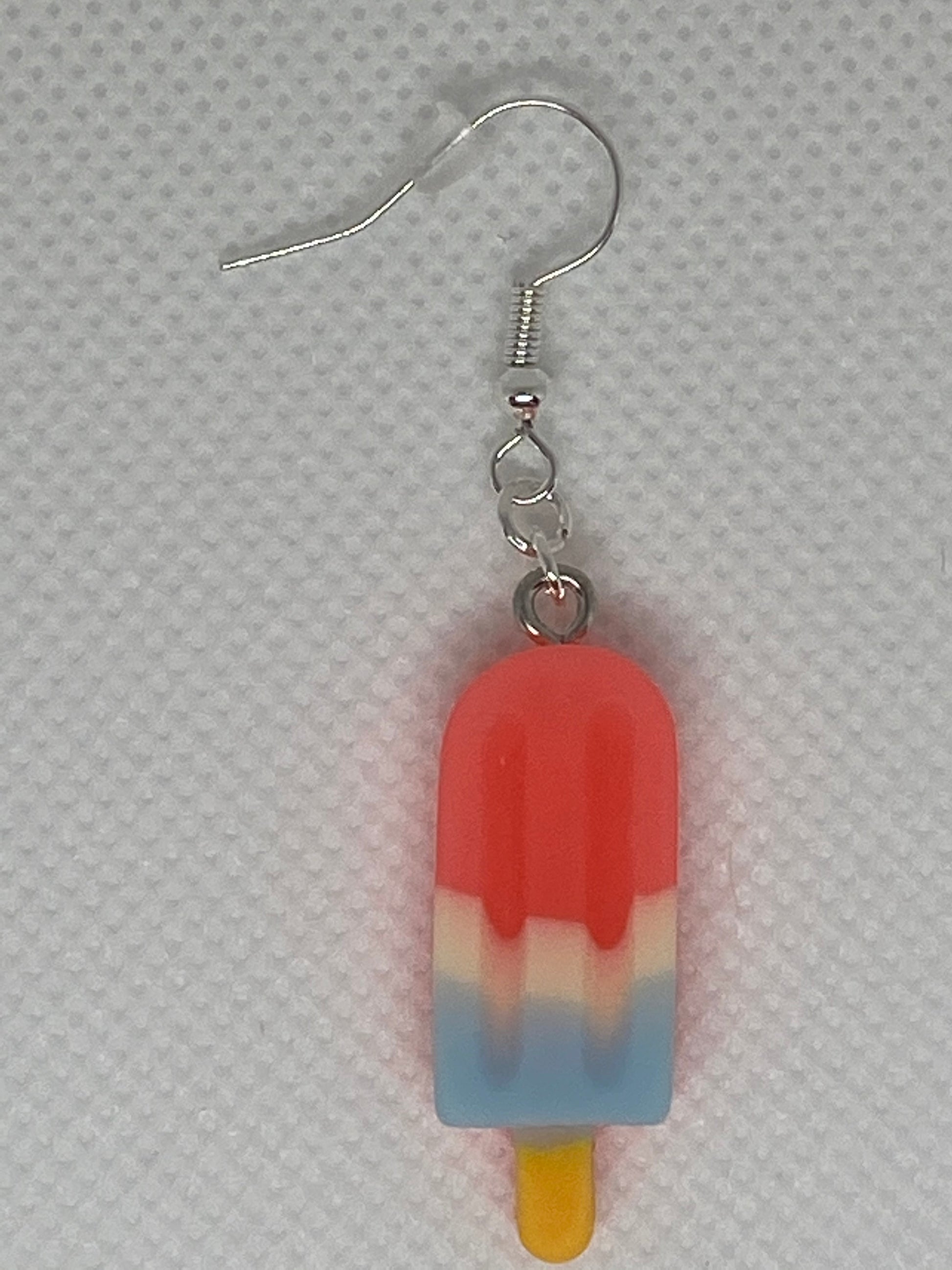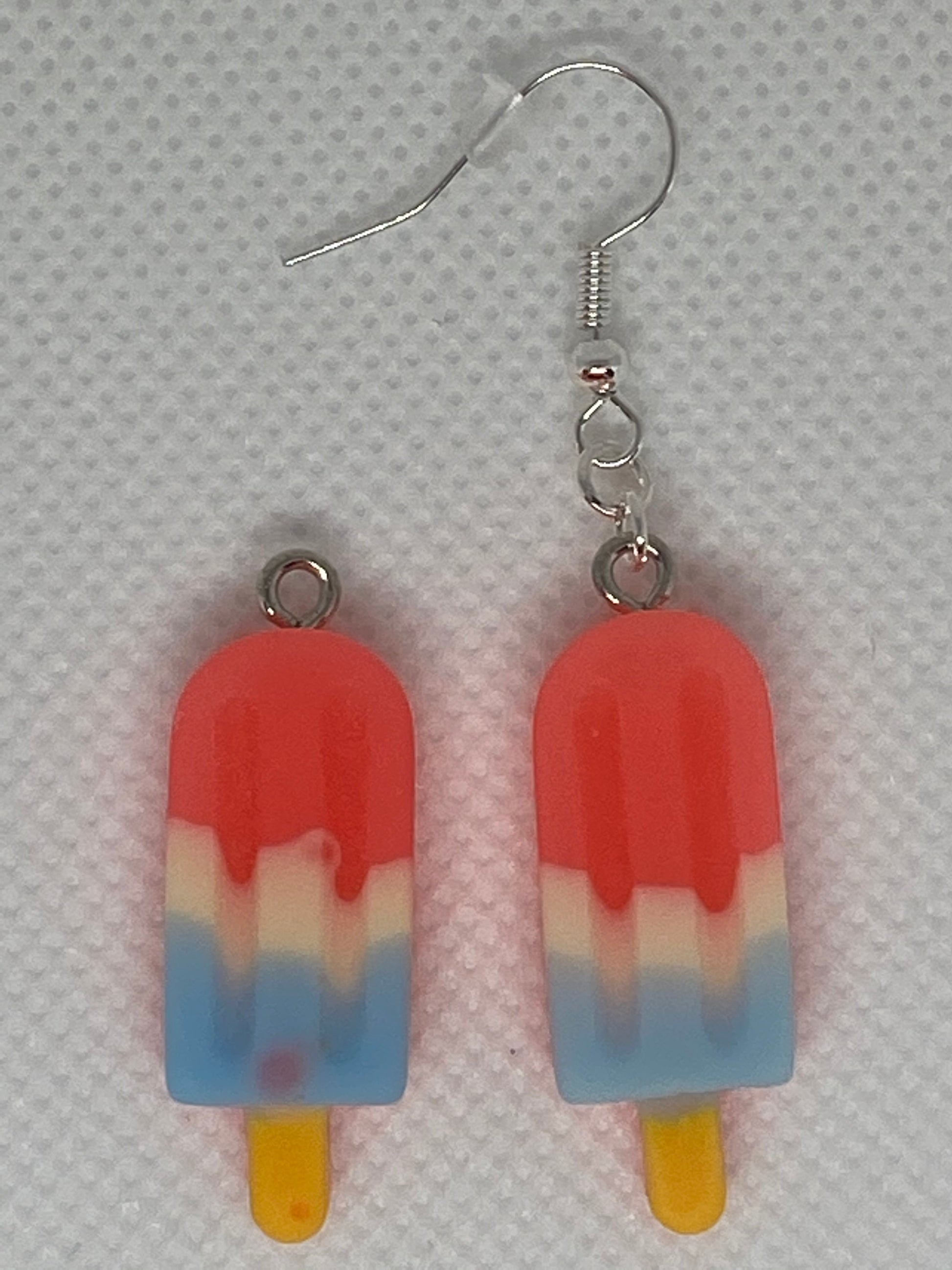 Dangling Red/White/Blue Popsicle Earrings Handmade With Love. All Earrings Come With a Backing. We Also Do Custom Crafts.