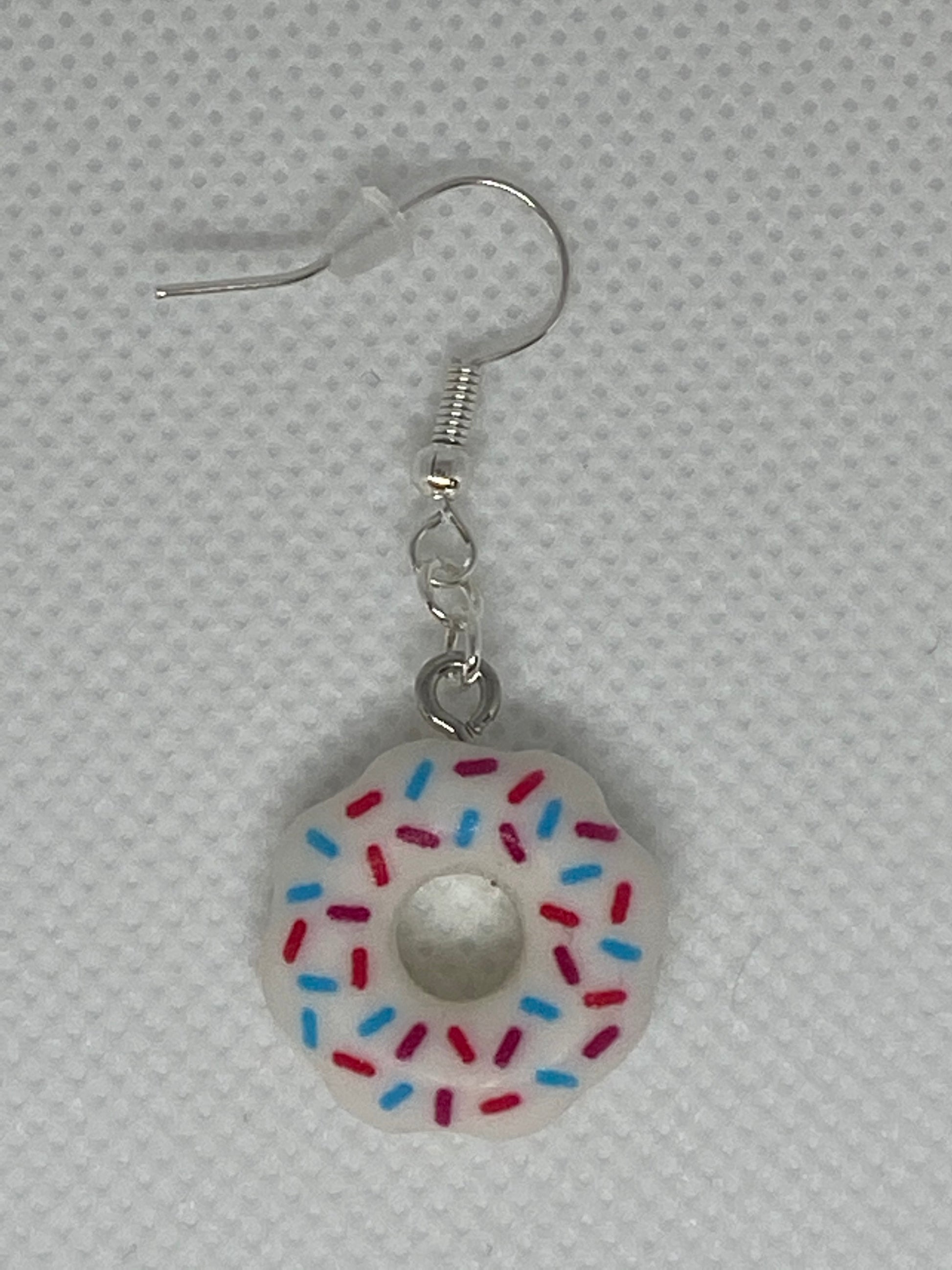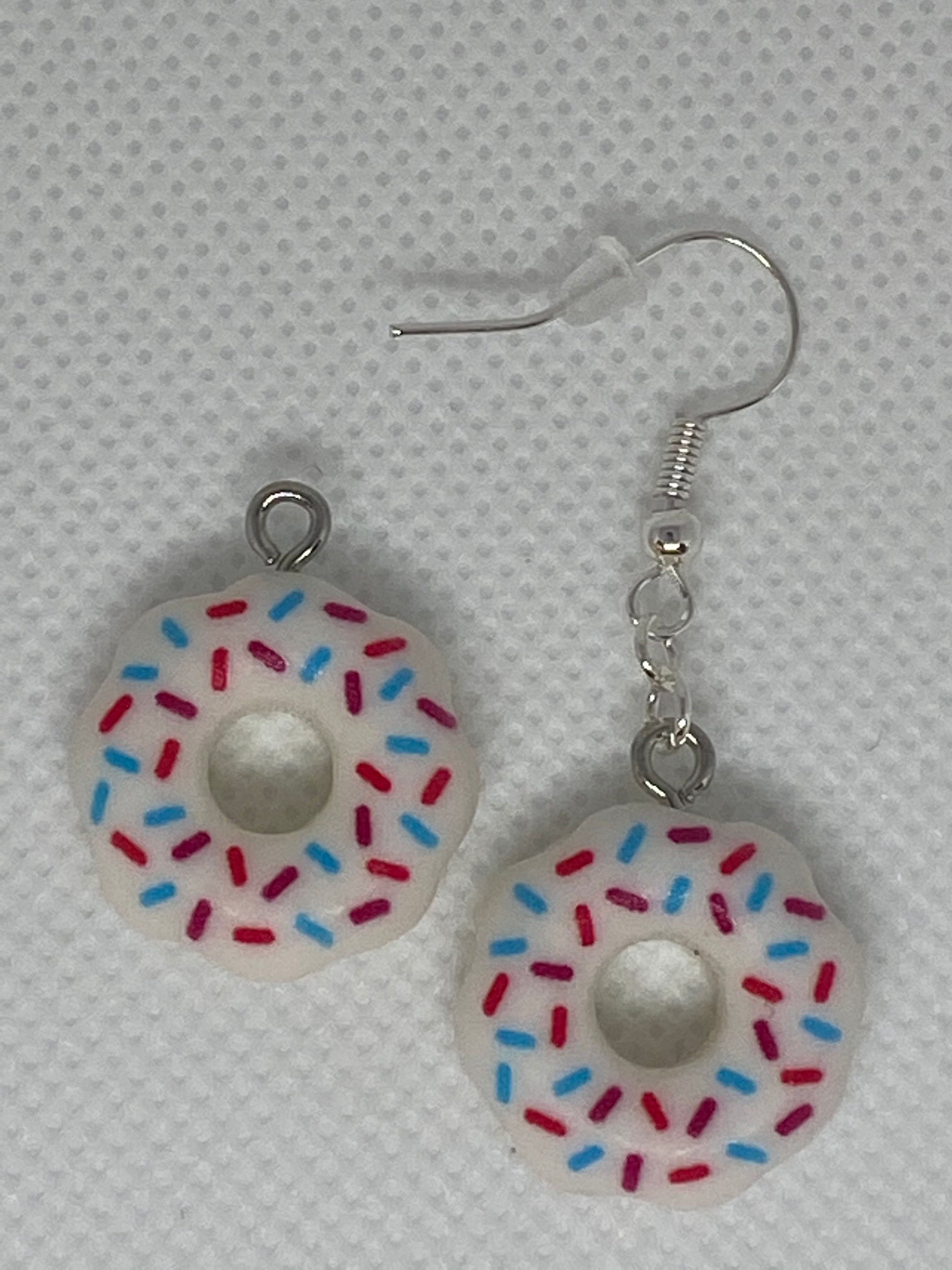 Dangling White Donut Earrings Handmade With Love. All Earrings Come With a Backing. We Also Do Custom Crafts.